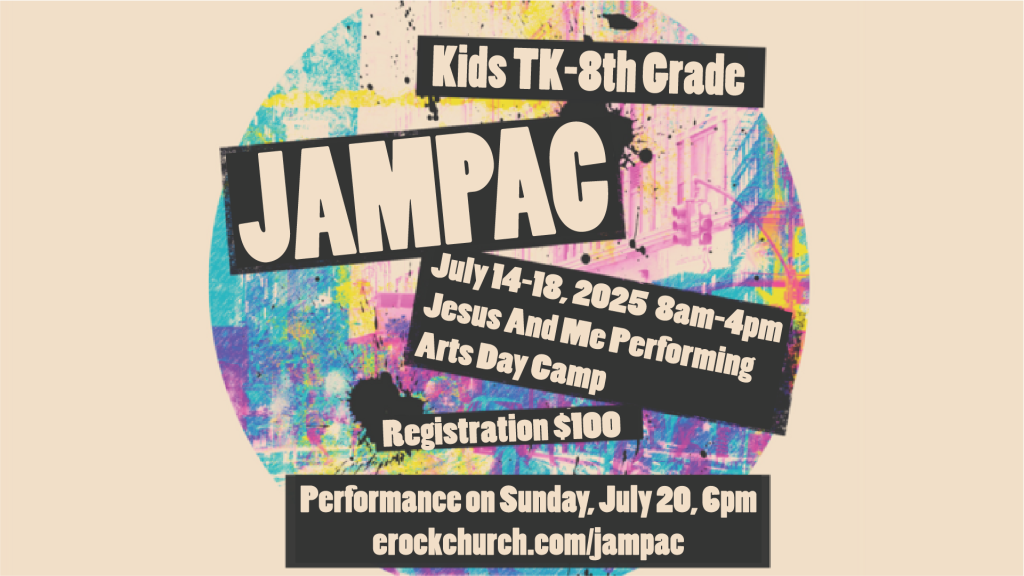 JAMPAC (Jesus and Me Performing Arts Camp) is a week long day-camp with music, choreography, drama, and Bible classes. Middle school students will have special opportunities to learn about sound, lighting, and video production.
